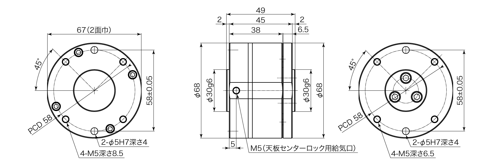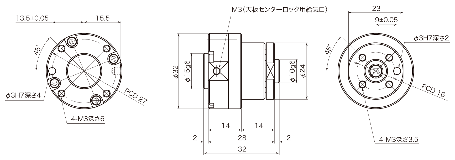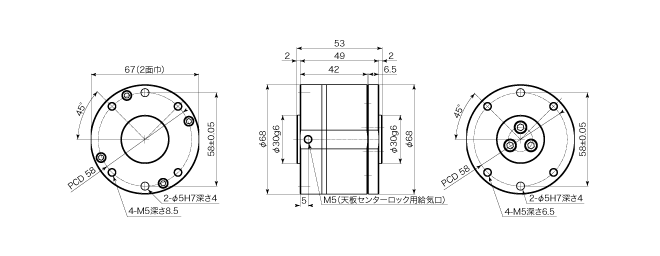 | 天板ロック機構type of lock for top plate | X、Y、θ | 2ポート:センターロック(エアーON時)・任意ロック(エアーON時) | |||
