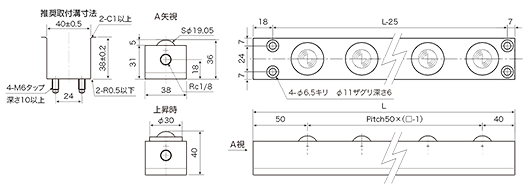 - ※長さは1ピッチ単位でオーダーメードが可能です。 ※ステンレスタイプに材質変更可能です。 ※型式の□にはプレインベア個数が入ります。